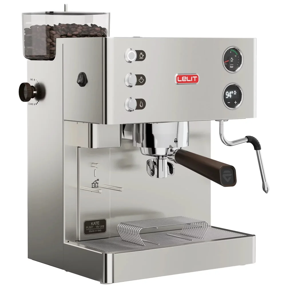 Grinding coffee, extracting espresso, whisking milk and all in very high quality. All in one machine that is a joy to look at. When you expect the best performance from your coffee machine, without compromise, don’t hesitate to choose from the VIP collection of Lelit coffee machines. In addition to Kate, this includes Grace, Victoria and Elizabeth. However, Kate is the only one of them created in a 2in1 style – a coffee machine with a built-in grinder.